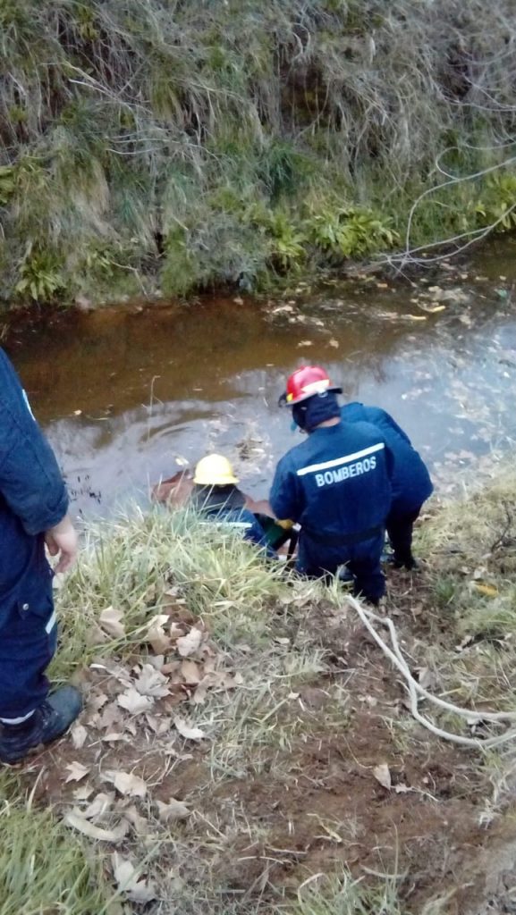 concurren a rescatar un animal equino que se encontraba atrapado en un canal lindero a la Ruta Nacional Nº 5, kilometro 310.