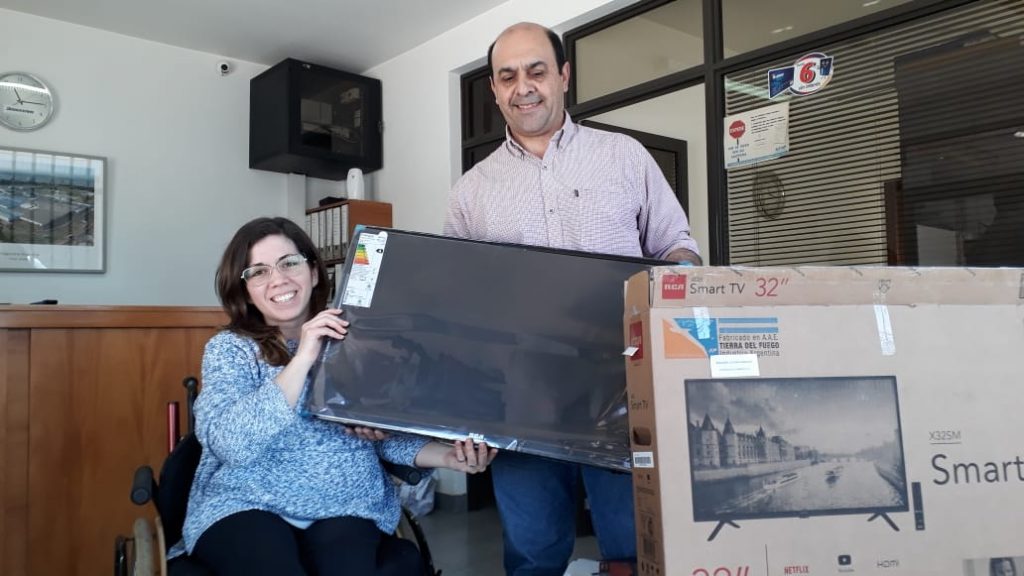fCon motivo del Día del Empleado de Comercio, el Centro Empleados de Comercio sorteó un Smart TV y la ganadora fue Luciana Soledad Berardo. Estuvieron presentes el presidente Jose Luis Bartomeoli, la tesorera Graciela Gornatti y el escribano Matias Menendez.