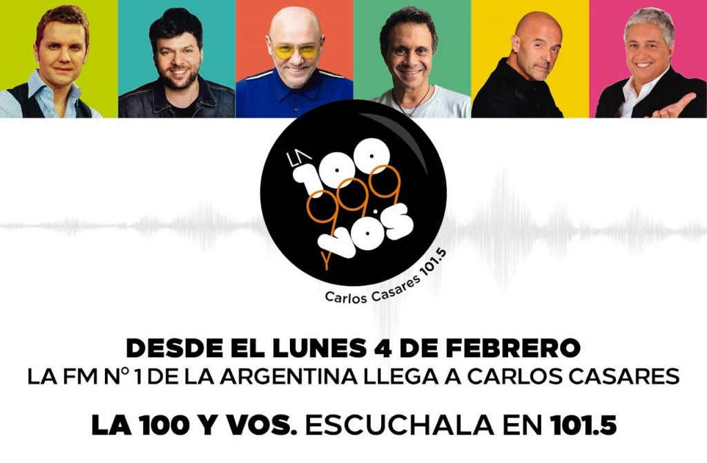 En Redes sociales nos van a poder escuchar desde cualquier parte del mundo a través de: www.la100encasares.com.ar; Facebook: La100enCasares; Instagram: La100enCasares y Twitter: La100enCasares. Todas llevan el mismo nombre para unificar y que sea más fácil encontrarlas.