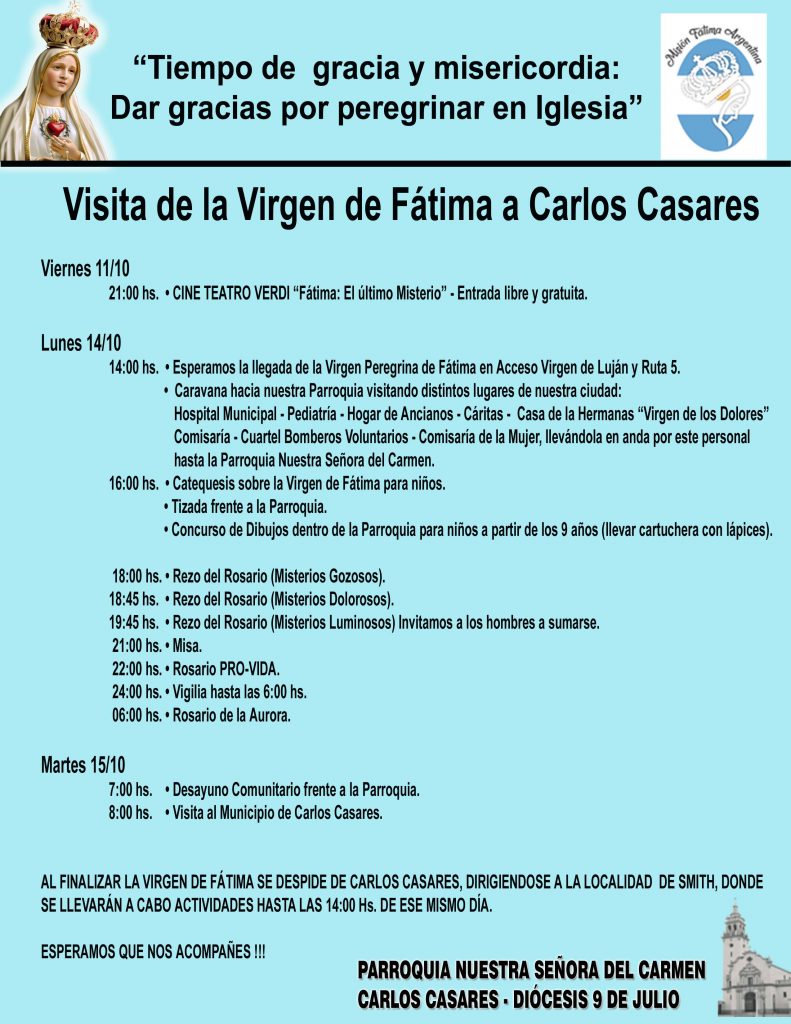 Desde la Parroquia Nuestra Señora del Carmen invitan a recibir a Nuestra Señora de Fátima el próximo lunes 14 de Octubre, a las 14 horas en el Acceso Virgen de Luján. Durante ese día, habrá diferentes actividades en la Parroquia, donde cada uno podrá acercarse y compartir en el momento que pueda y lo desee.