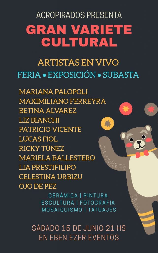 La integrante de Acropirados afirmó “la idea es que puedan exponer y vender sus obras y que al mismo tiempo se puedan subastar; pueda ser que no se venda una obra, para eso la subasta de cada artistas va a ser que cada uno de ellos saque un redito económico y de esa manera tenga un beneficio por haber participado esa noche”