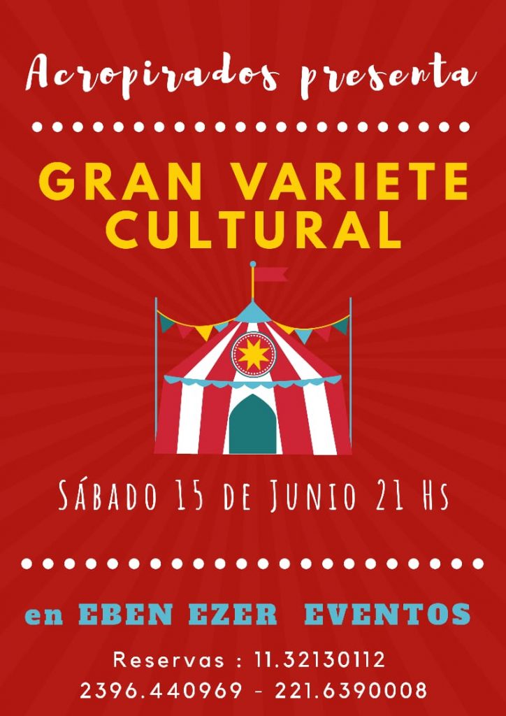 Se viene la Gran Variete Cultural el próximo 15 de junio a las 21 horas en Eben Ezer eventos. Portal El Toro dialogó con Vanina Cánepa, una de las integrantes del Grupo de Circo Acropirados quienes llevan adelante la organización de la Variete Cultural. «Este tipo de eventos es para hacer conciencia en nuestra ciudad de que se pueden autogestionar eventos culturales», dijo una de las organizadoras.