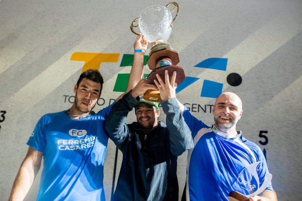 A su término, saltaron a la cancha para el último choque deportivo, Re-Cueto y Bezek-Corona inundados por los flashes de las cámaras, las luces y los medios audiovisuales que de la mano de HOLI MULTIMEDIA inmortalizaron el momento culmine del TPA en una final espectacular terminada en favor de los nuevejulienses en dos set por 15/10-15/11.