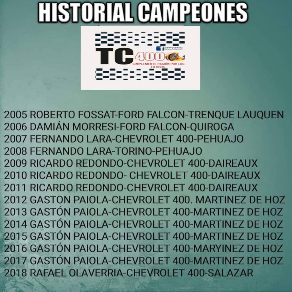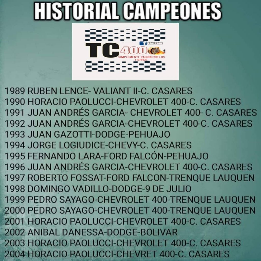 Listado de pilotos que participaron la primer carrera de la historia: Juan Andrés García, Jorge Loguidice, Rubén Martínez, Sergio Kertes, Rodolfo Panet, Héctor Carabelli, Luís Tudero, René Abuchain, Ricardo Maceira, Rubén Caniglia, Antonio Caniglia, Juan Carlos Rodríguez, Agustín Ondano, Rubén Lence, Víctor Finelli y Cesar Santangelo. La carrera se disputó en Carlos Casares y la ganó Rubén Lence con su Valiant.