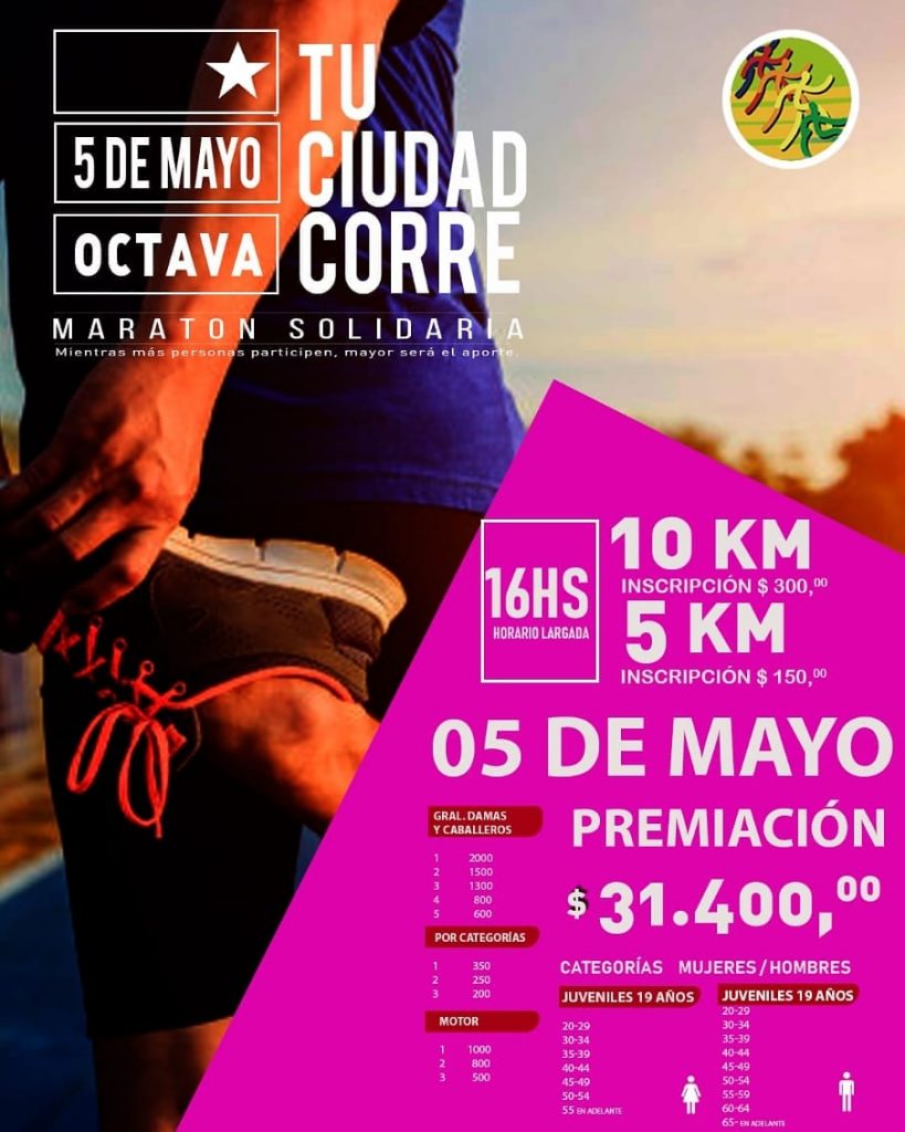Recordemos que la maratón solidaria se realizará el próximo 5 de mayo, la largada comenzará a las 16 horas. Se podrá optar por correr 10 K (inscripión $300) o 5K (inscripción $150).
