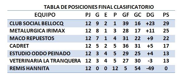 “club social bellocq” accedio directamente a semifinales por haber ganado el clasificatorio