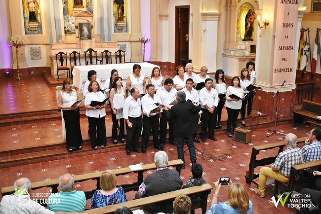 El coro municipal de nuestra ciudad brindó una emotiva presentación el domingo por la noche en la Iglesia Parroquial Ntra. Sra. del Carmen con un concierto navideño después de la Misa Dominical. Estuvo presente el intendente, Walter Torchio y su esposa, Andrea Grobocopatel.