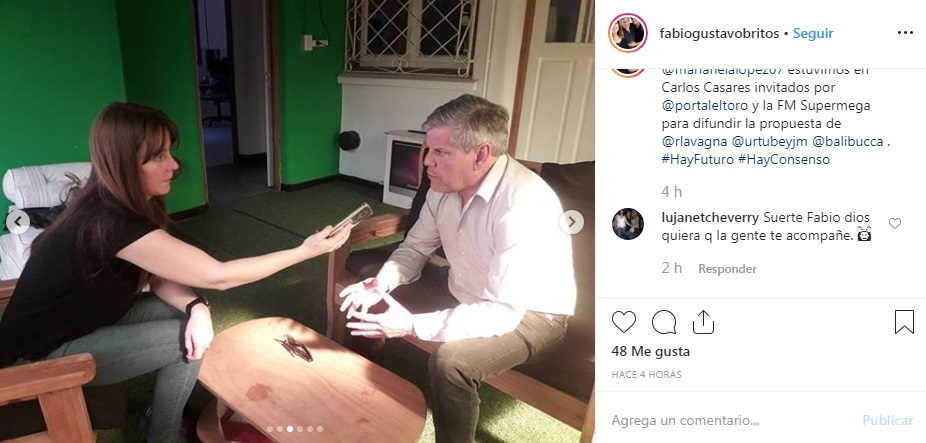 Los candidatos a legisladores Fabio Britos (Provincial) y Marianela López (nacional) por Consenso Federal estuvieron en Carlos Casares y visitaron la redacción de Portal El Toro y dialogaron de cara a las elecciones generales de Octubre y pidieron a los casarenses “elijan el intendente que más los representen, pero de las listas de diputados hacia arriba vote Consenso Federal porque tenemos al mejor candidato a gobernador y el mejor candidato a presidente”.