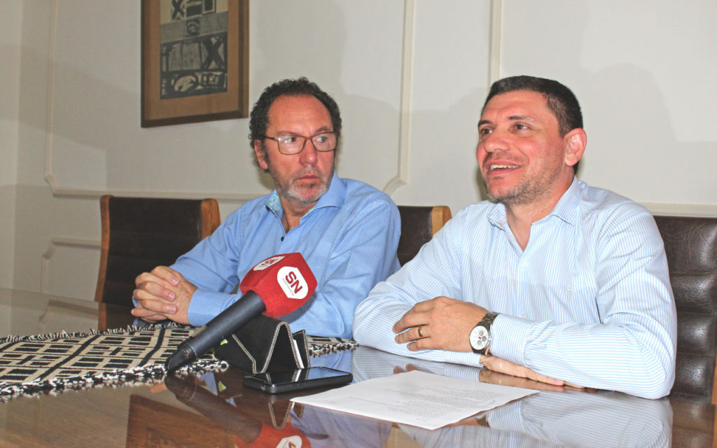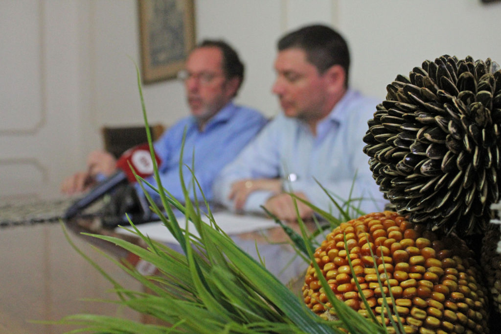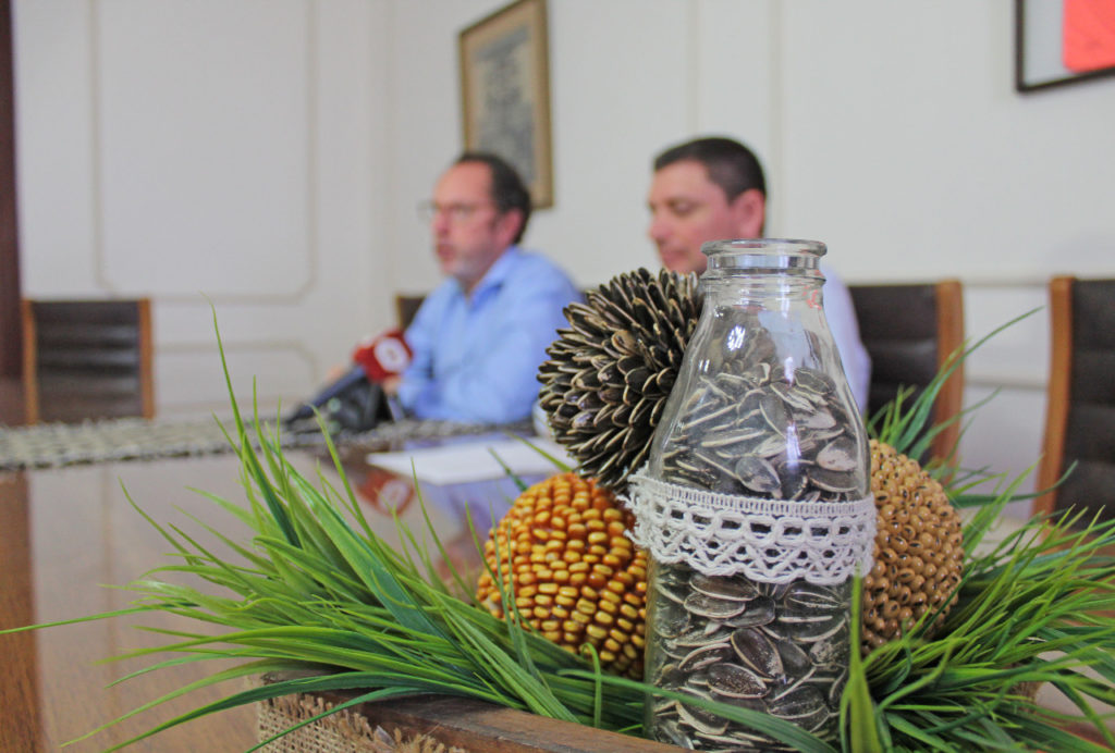 El intendente municipal, Walter Torchio junto al presidente de la comisión de la fiesta nacional del Girasol, Isaúl Wilner brindaron una conferencia de prensa dando detalles de la organización de la XXVIII Fiesta Nacional del Girasol en Carlos Casares.