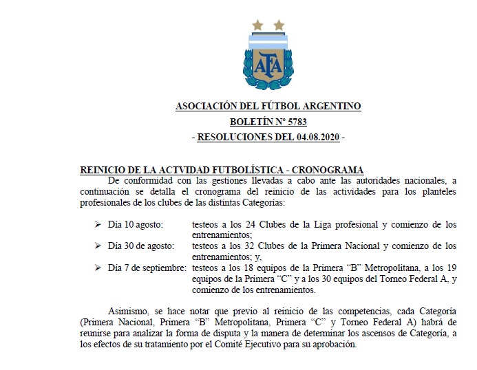 Desde la institución sojero, comunicaron que «Siguiendo el protocolo establecido por AFA y el Ministerio de Salud, el equipo médico del Club Agropecuario realizó los testeos correspondientes a jugadores del plantel profesional, cuerpo técnico, colaboradores y algunos directivos».
