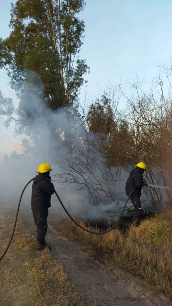 Con fecha 1/8/2020 siendo las 19.30 horas una dotación de cinco bomberos a cargo del cabo Pablo Perez concurrió a extinguir incendio de malezas en banquina de ruta 50 en cercanías a Mauricio Hirsch.