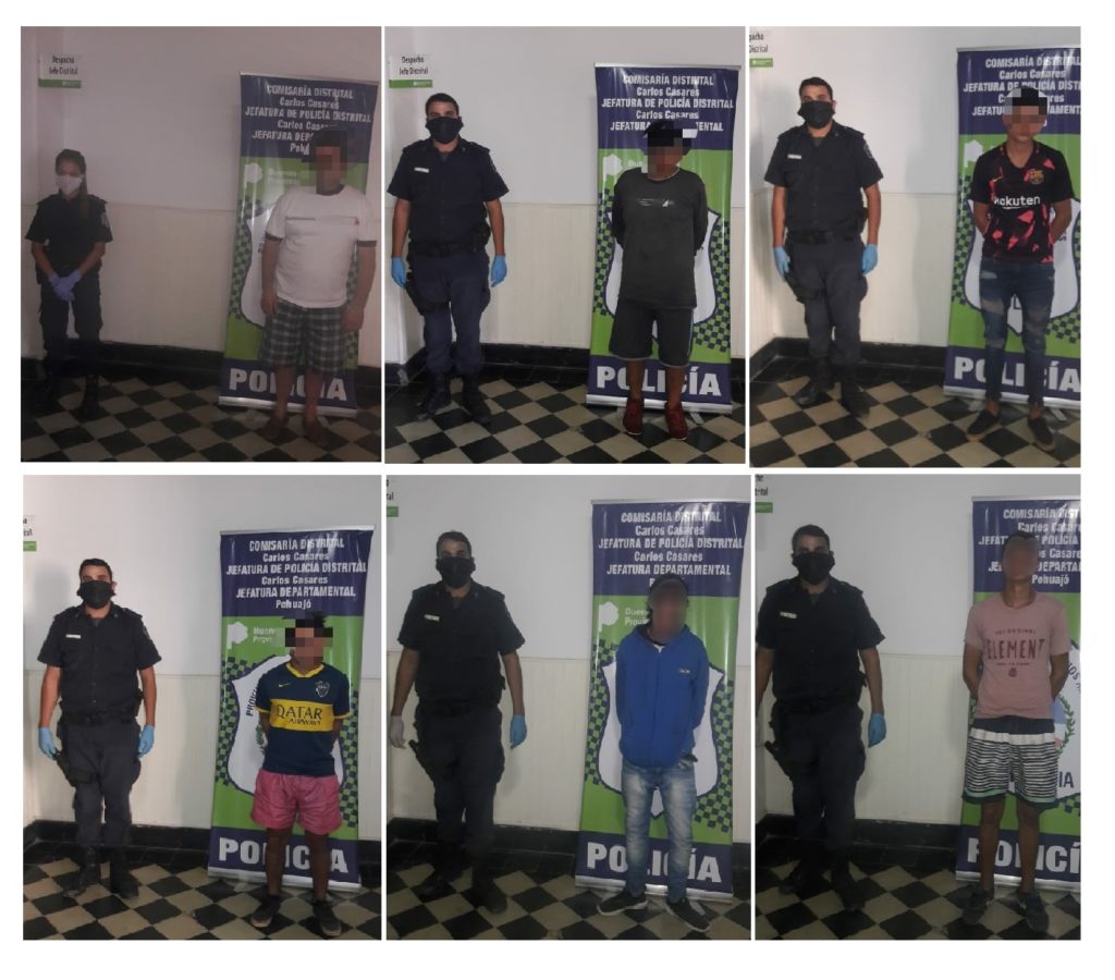En horas de la tarde la misma policía local detuvo a los ciudadanos Juan Carlos Martínez (52 años); Federico Nicolás Guille (20 años), Victor Jesús Cabrera (20 años), Pablo Ezequiel Doucet (19 años) y Horacio Emanuel Costa (20 años) todos incumpliendo el Aislamiento Social Preventivo y Obligatorio que rige en la república argentina.