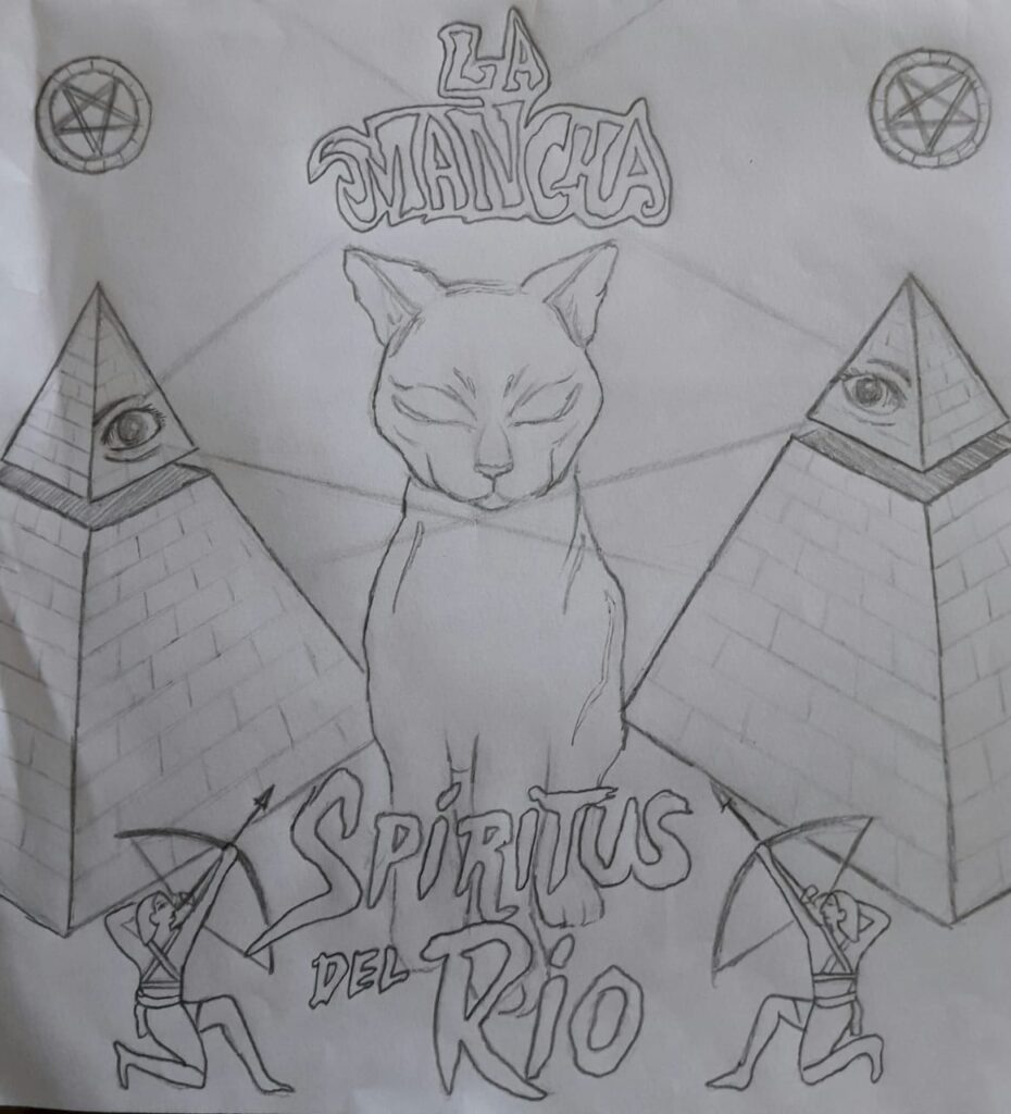 La idea fue una sumatoria de aportes, junto a Mati (sobrado) el tecladista de la banda, quien tuvo una suerte de visión sobre lo que imaginaba que podía llegar a ser la tapa. Lo puso en palabras, yo puse esas palabras al servicio de la hoja y así empezaron a salir los primeros bocetos. La tapa final, tal como va a salir publicada, tiene muchos elementos místicos como el ojo que todo lo ve y diferentes símbolos y personajes que fuimos colocando para que la idea cierre estéticamente. Después la apreciación es libre, buscamos generar más preguntas que respuestas, creo que la función del arte siempre debe ser esa.