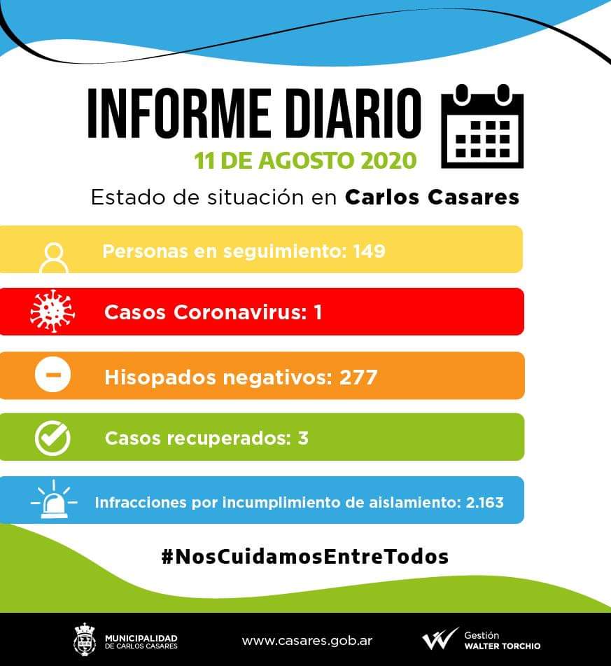 El jefe comunal, Walter Torchio brindó su informe diario donde remarcó que “no hay circulación viral” en Carlos Casares y además explicó que no se están realizando hisopados por se llegó al cupo.