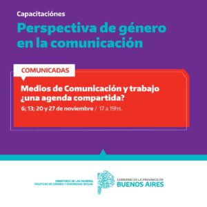 2 – “Medios de Comunicación y trabajo ¿una agenda compartida?” a cargo de Comunicadas.org, colectivo comunicacional de mujeres. Los días 6, 13, 20 y 27 de noviembre, de 17 a 19 horas