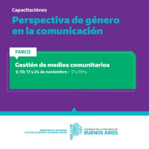 1- “Gestión de Medios Comunitarios” a cargo del Foro Argentino de Radios Comunitarias (FARCO). Los días 3, 10, 17 y 24 de noviembre, de 17 a 19 horas