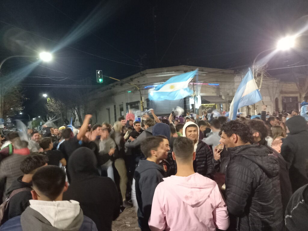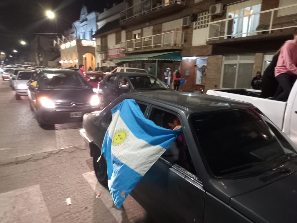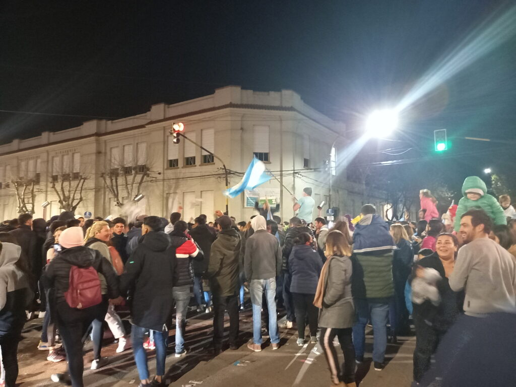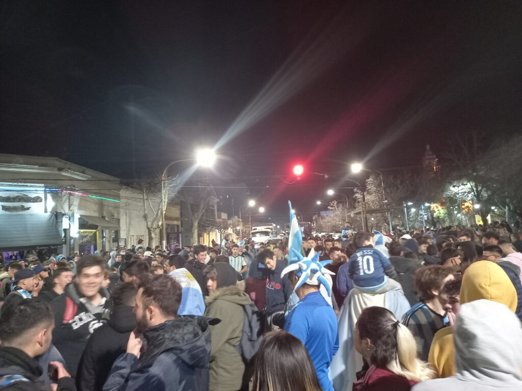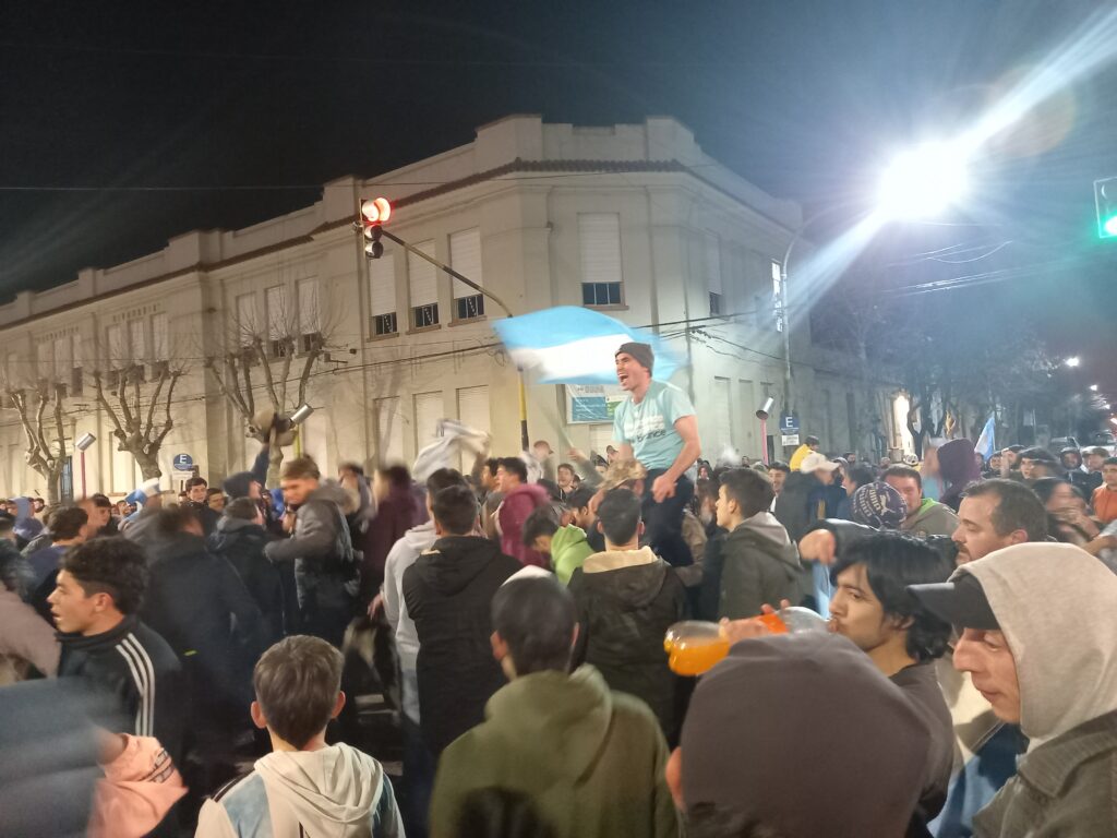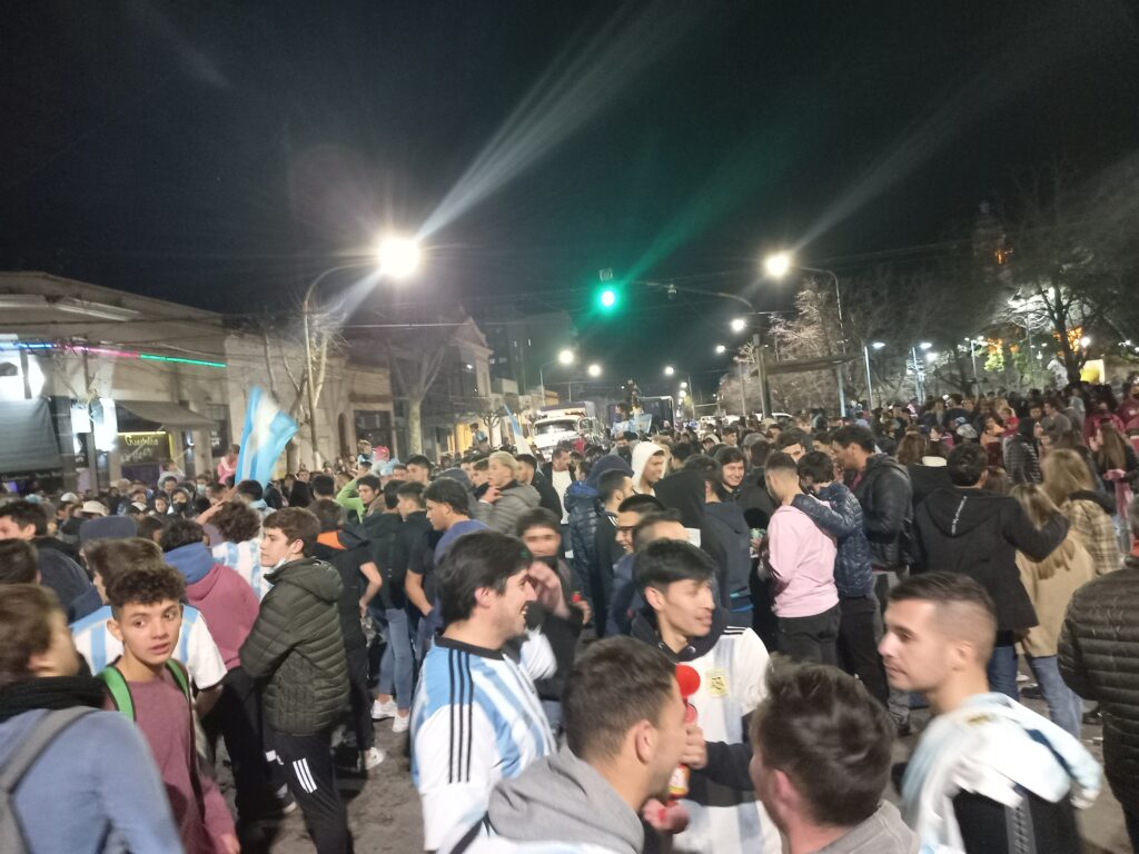 La concentración de muchos vecinos y fanáticos se dio en la esquina de la Plaza San Martin, cruzando la Escuela Primaria N° 8. Saltos, gritos, alegría, emoción, banderas, gorros fueron el paisaje de las calles céntricas de la ciudad. También muchos hinchas se acercaron en sus autos y motos a formar parte de estos históricos festejos.