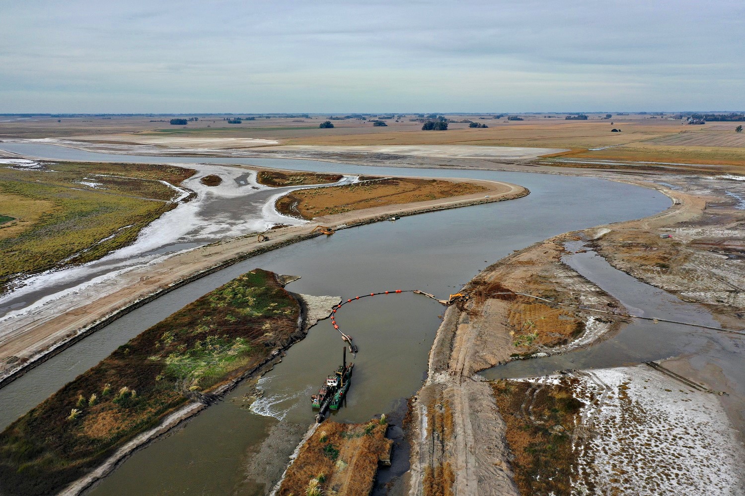 El Plan Maestro del Río Salado fue diseñado en 1995 con el objetivo de recuperar 8 millones de hectáreas en 19 municipios bonaerenses. La ejecución comenzó en 2003, aunque atravesó sucesivas interrupciones. “Tuvo etapas de avance, pero también parates prolongados. Es una obra monumental, comparable en movimiento de suelos al canal de Panamá o de Suez, pero que corre el riesgo de eternizarse”, señaló Larrañaga.