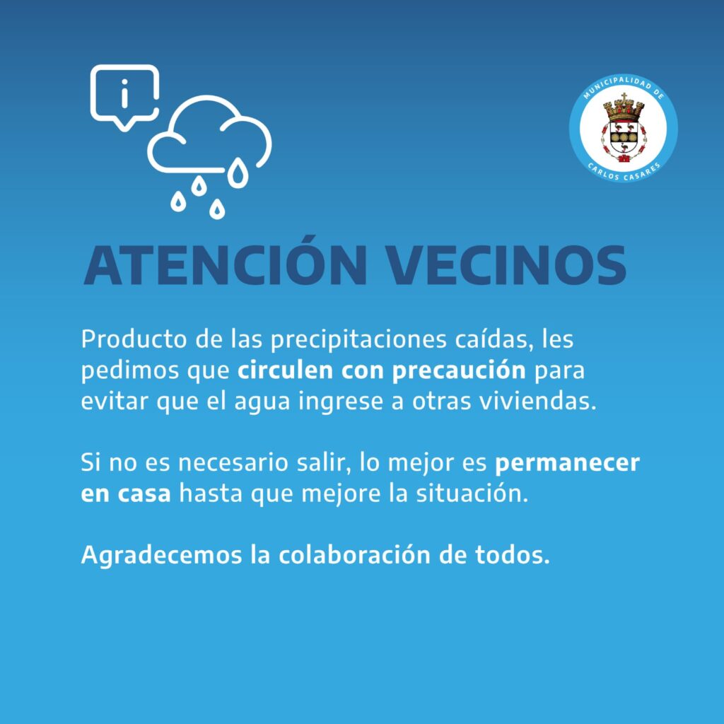 Desde el municipio se encuentran trabajando para atender los diferentes reclamos y a solicitaron a la población que si no es necesario que se mantengan a resguardo en sus viviendas.