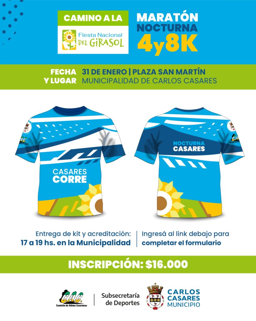 Camino a la Fiesta Nacional del Girasol llega la Maratón Nocturna 4K y 8K. El próximo 31 de Enero de 2026 desde Plaza San Martin.