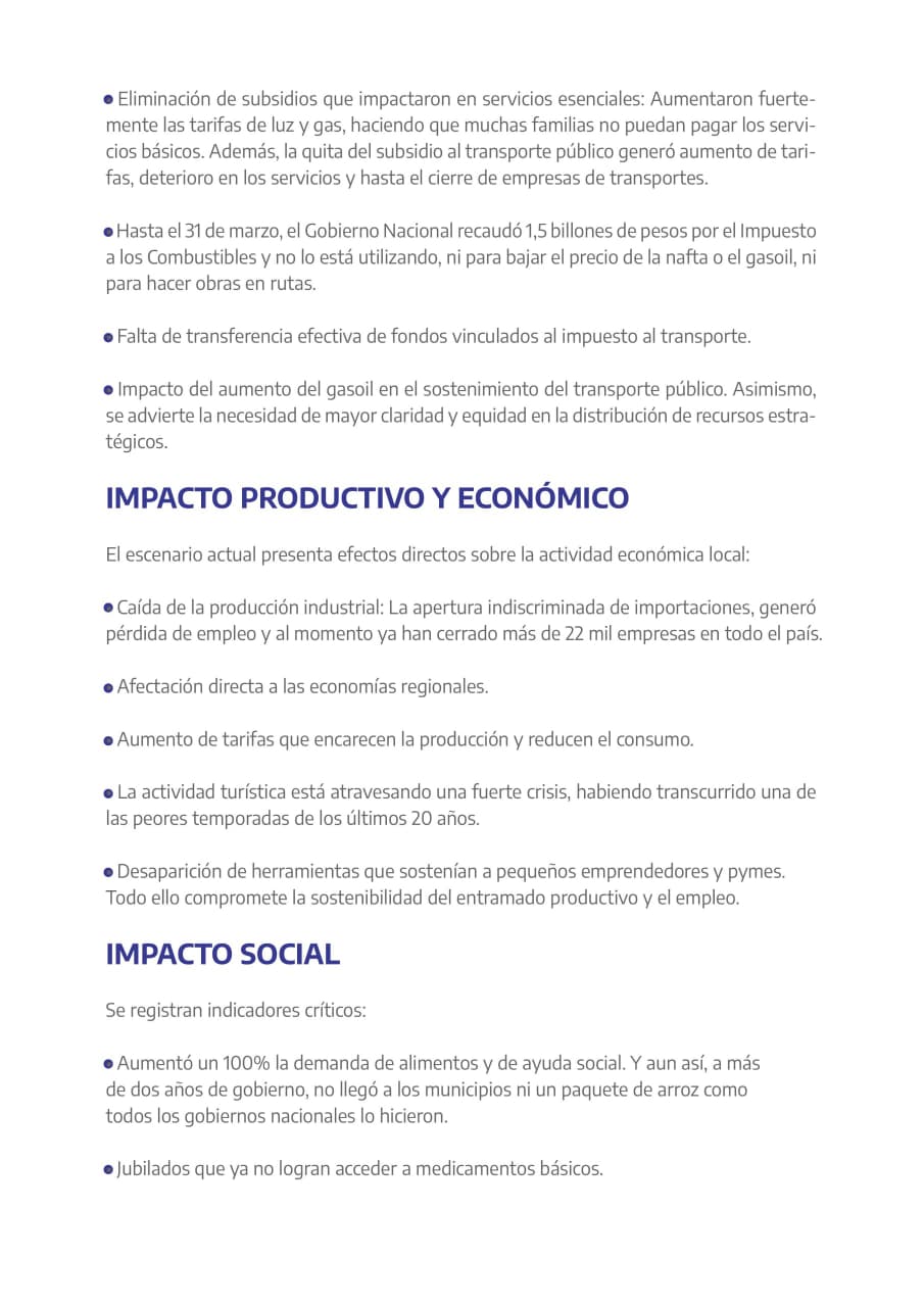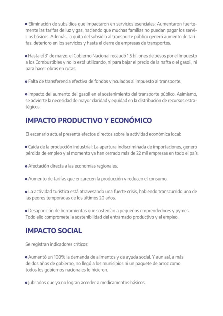 Desde la entidad remarcaron la necesidad de avanzar en políticas inmediatas que fortalezcan a los gobiernos locales, tanto en términos financieros como operativos. En ese sentido, subrayan que los municipios son la primera línea de contención frente a la crisis.